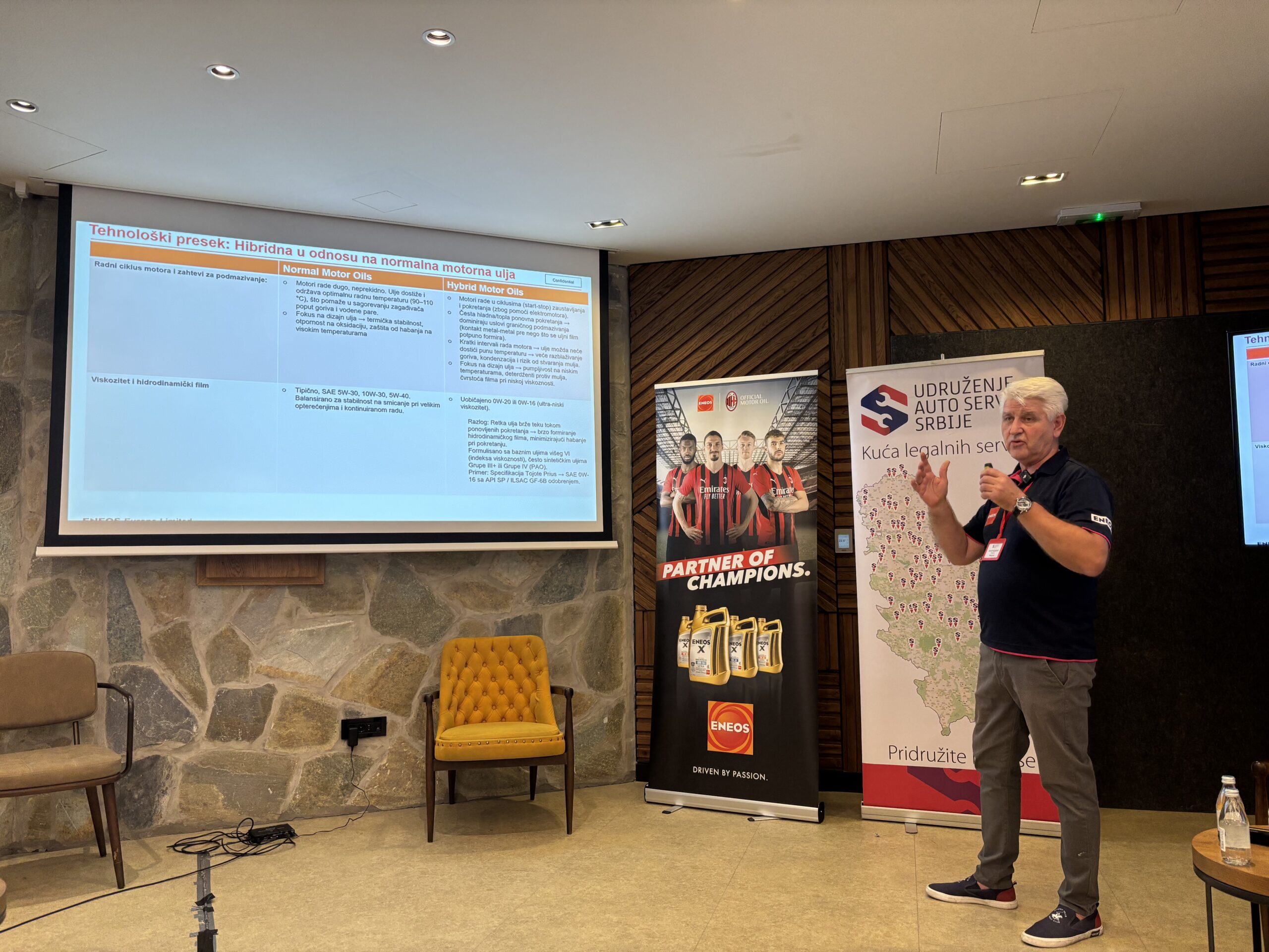 Skup je završen prezentacijom Zorana Pučijaševića iz kompanije ENEOS, koji je govorio o uljima i fluidima za električna i hibridna vozila i načinima na koje serviseri mogu biti sigurni da su za svoje klijente odabrali odgovarajuće proizvode.