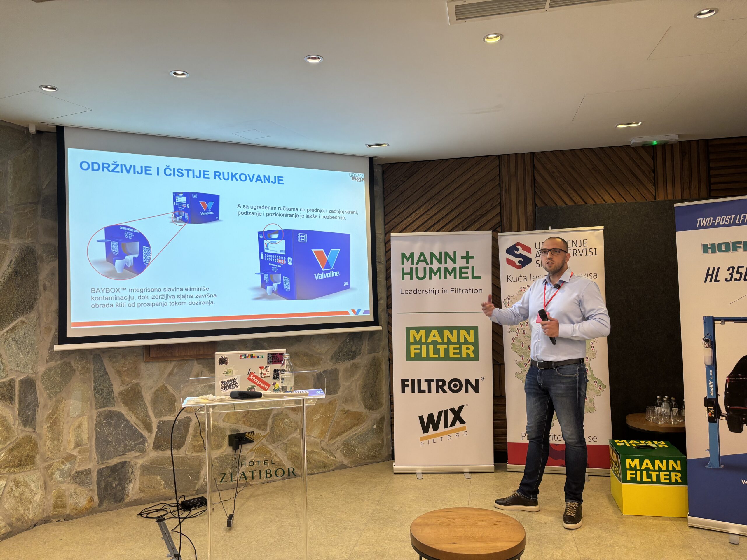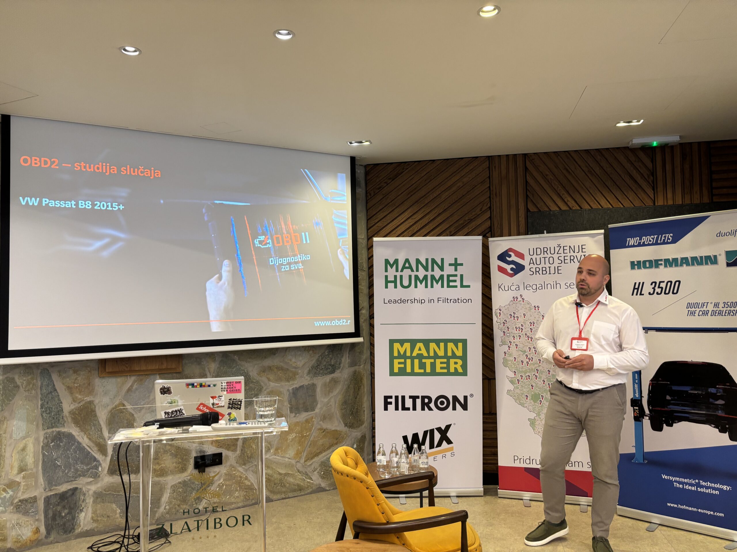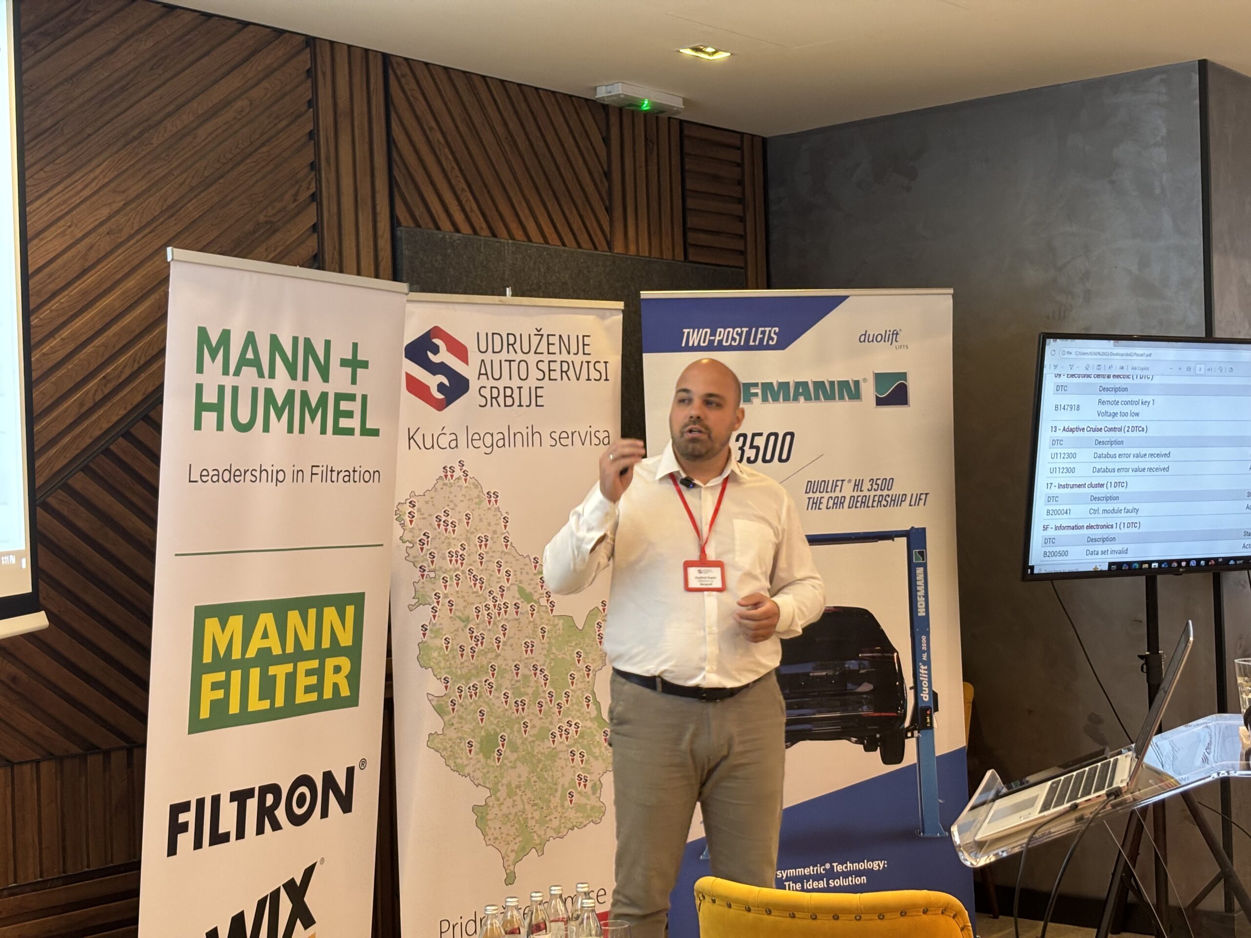 Skup je otvorio Sedin Hatibović iz kompanije MANN+HUMMEL tehničkom prezentacijom o specifikacijama filtera kod različitih brendova, sa posebnim osvrtom na e-mobilnost i filtere za vozila nove generacije.