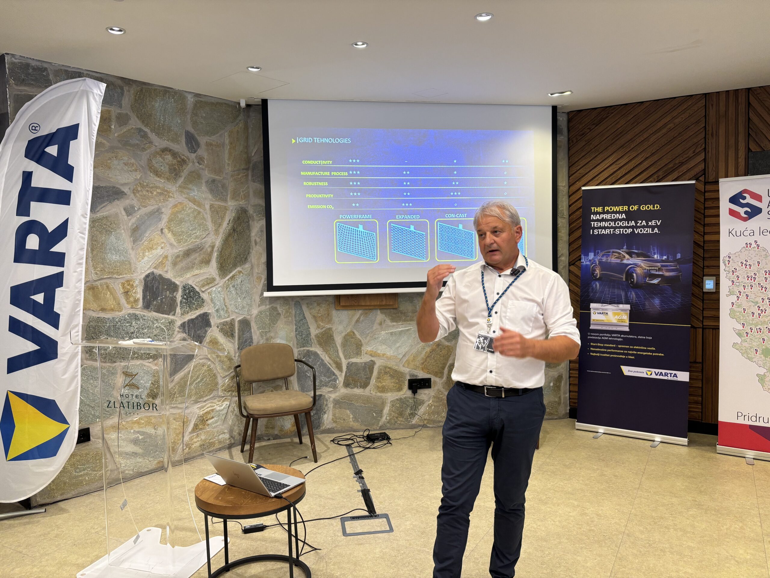 Nakon toga, Miran Lah iz kompanije VARTA održao je tehničku obuku o izboru i održavanju akumulatora za start-stop i elektro vozila.